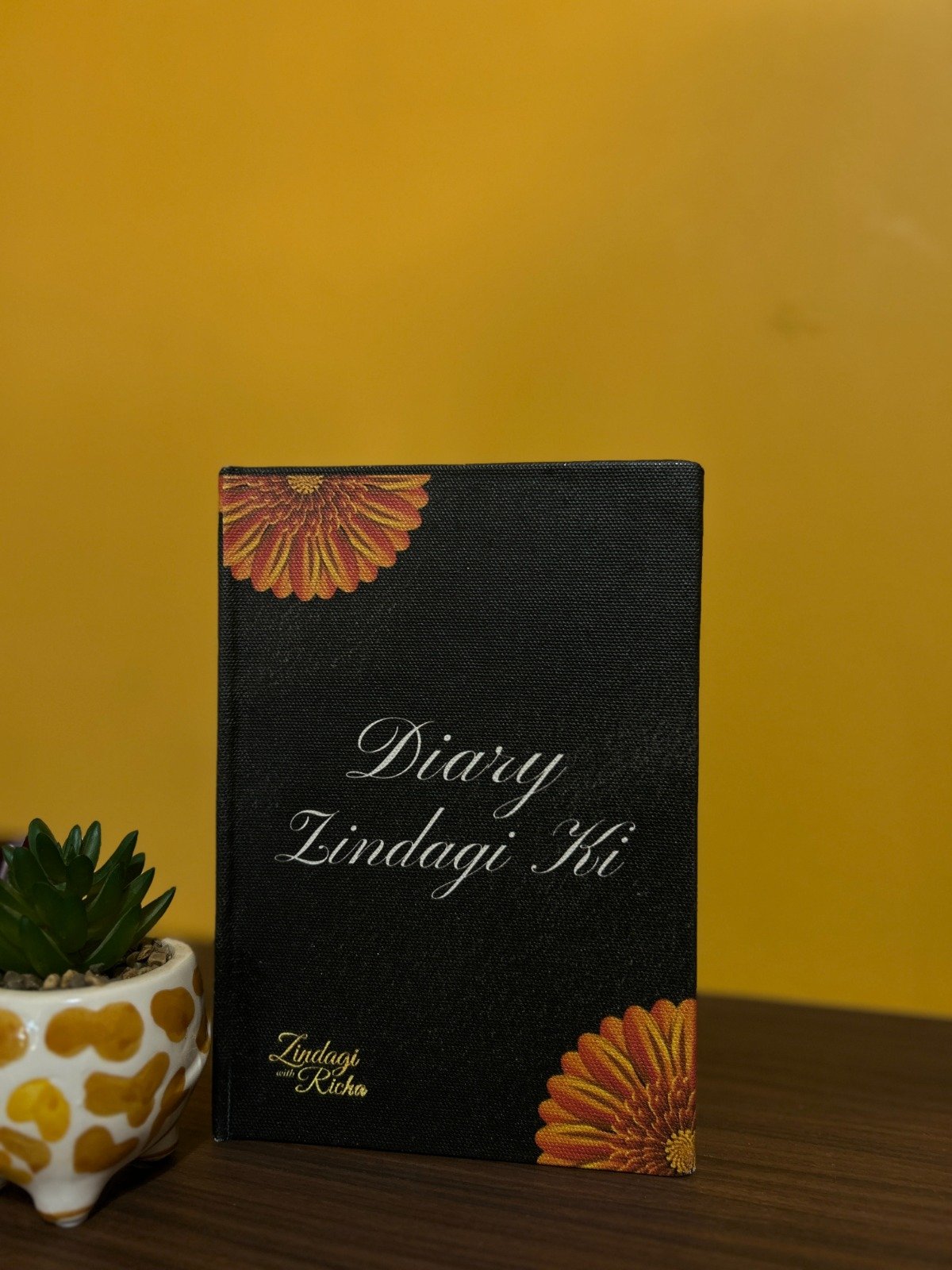 Capture your thoughts, memories, and dreams in Diary Zindagi Ki, a beautifully designed personal journal that celebrates life and self-expression. Crafted with an elegant black fabric-textured cover and vibrant floral accents, this diary adds a touch of warmth and positivity to your everyday writing.